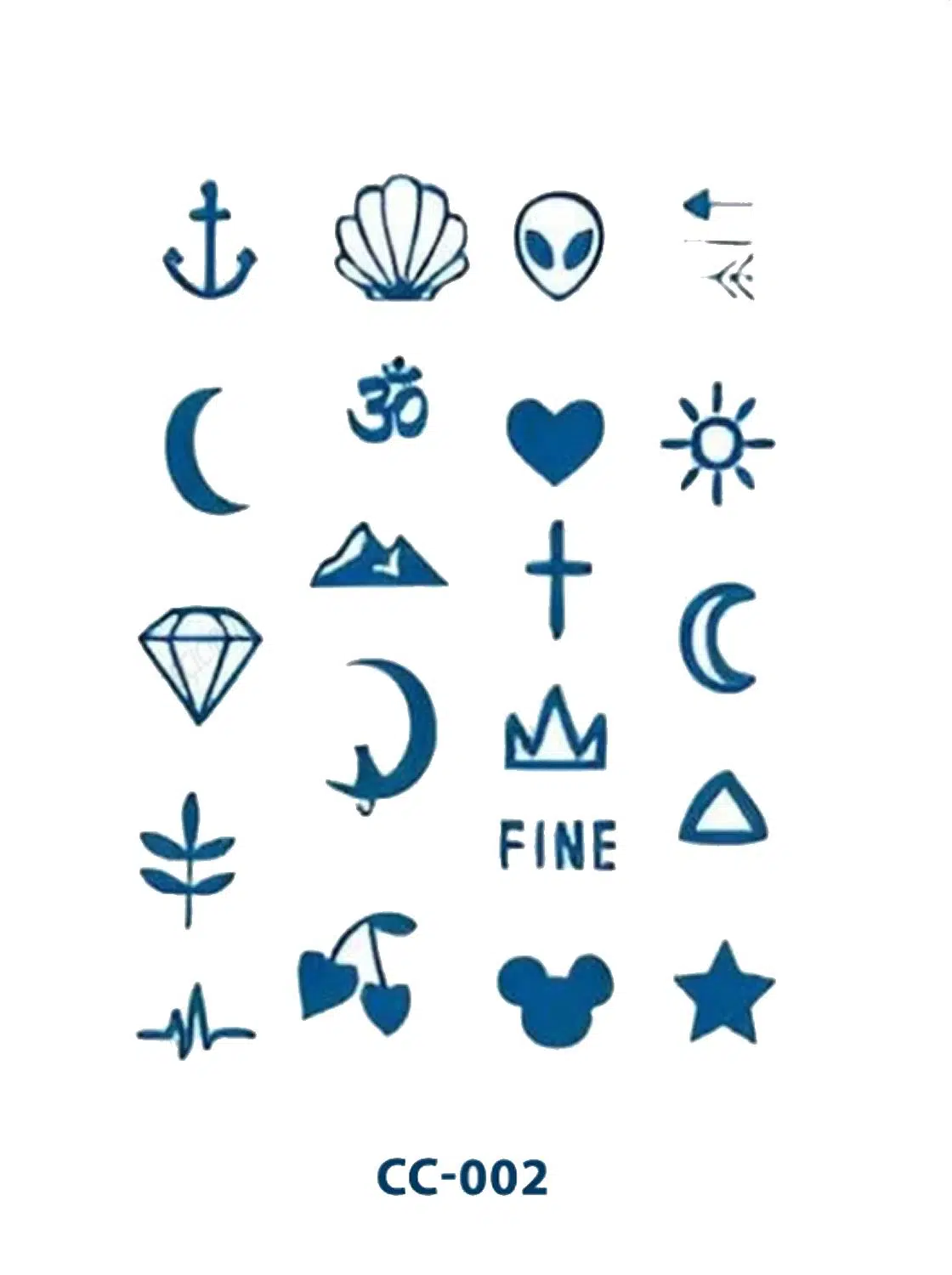 | Etiketler | CC-002 YARI KALICI ÇOKLU ŞEMATİK DESEN PARMAK VE VUCUT DÖVME-TATTO |