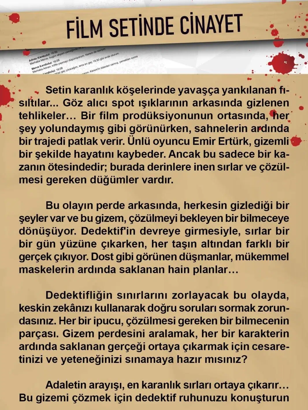 | Etiketler | DEDEKTİF VAKA ÇÖZME OYUNU FİLM SETİNDE CİNAYET DAVASI |