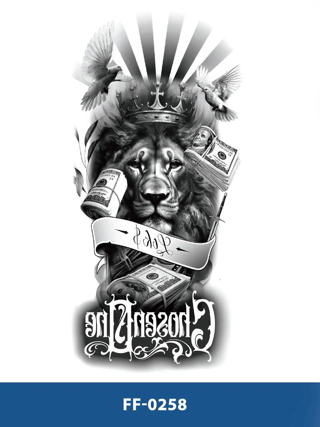 | Etiketler | FF-258 ORTA BOY ASLAN VE PARA DESEN GEÇİCİ DÖVME-TATTO |