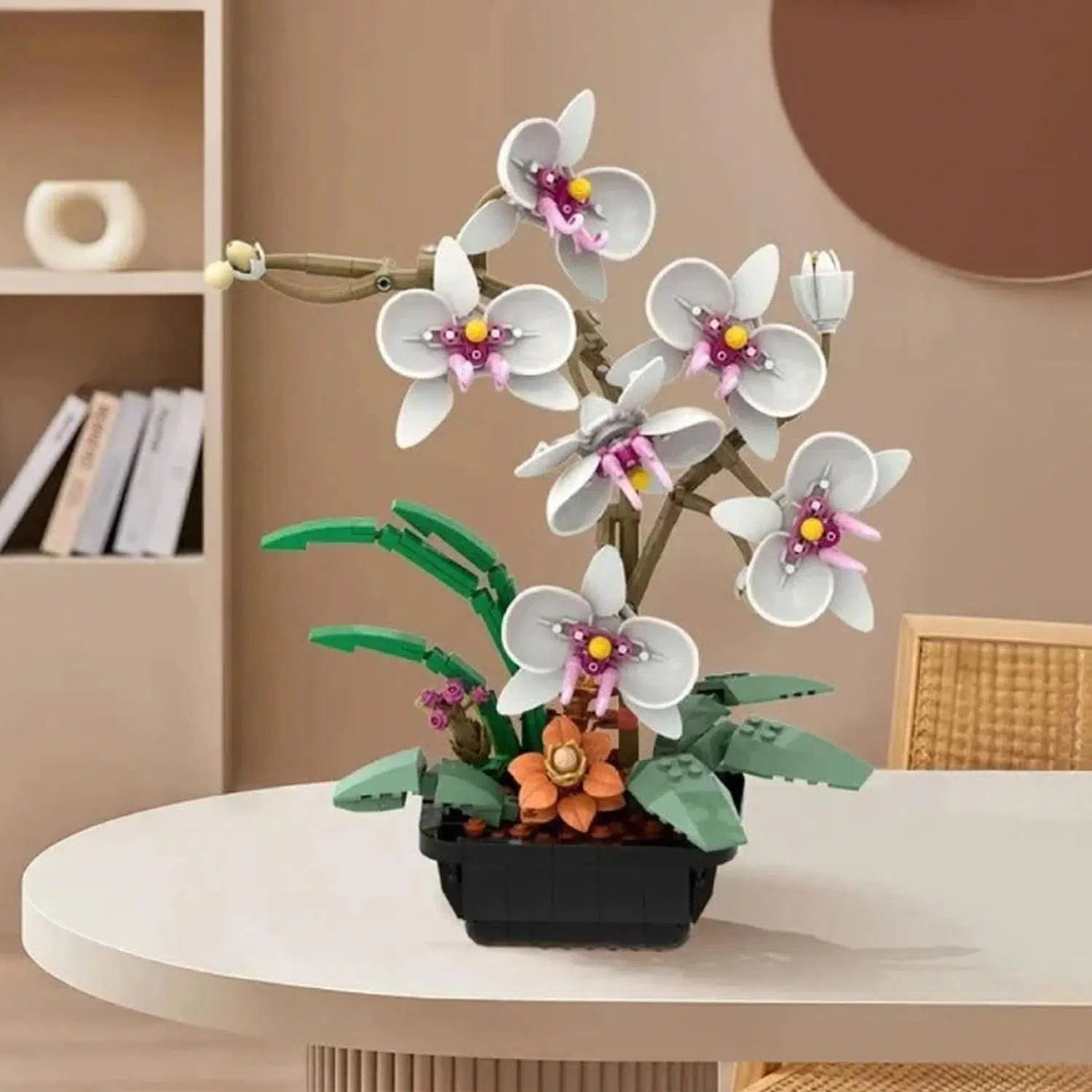 JAKİ Beyaz Orkide Saksıda Block Oyuncak Seti, zarif beyaz orkide çiçeğini yaşam alanlarına taşıyan dekoratif ve yaratıcı bir block yapı setidir.