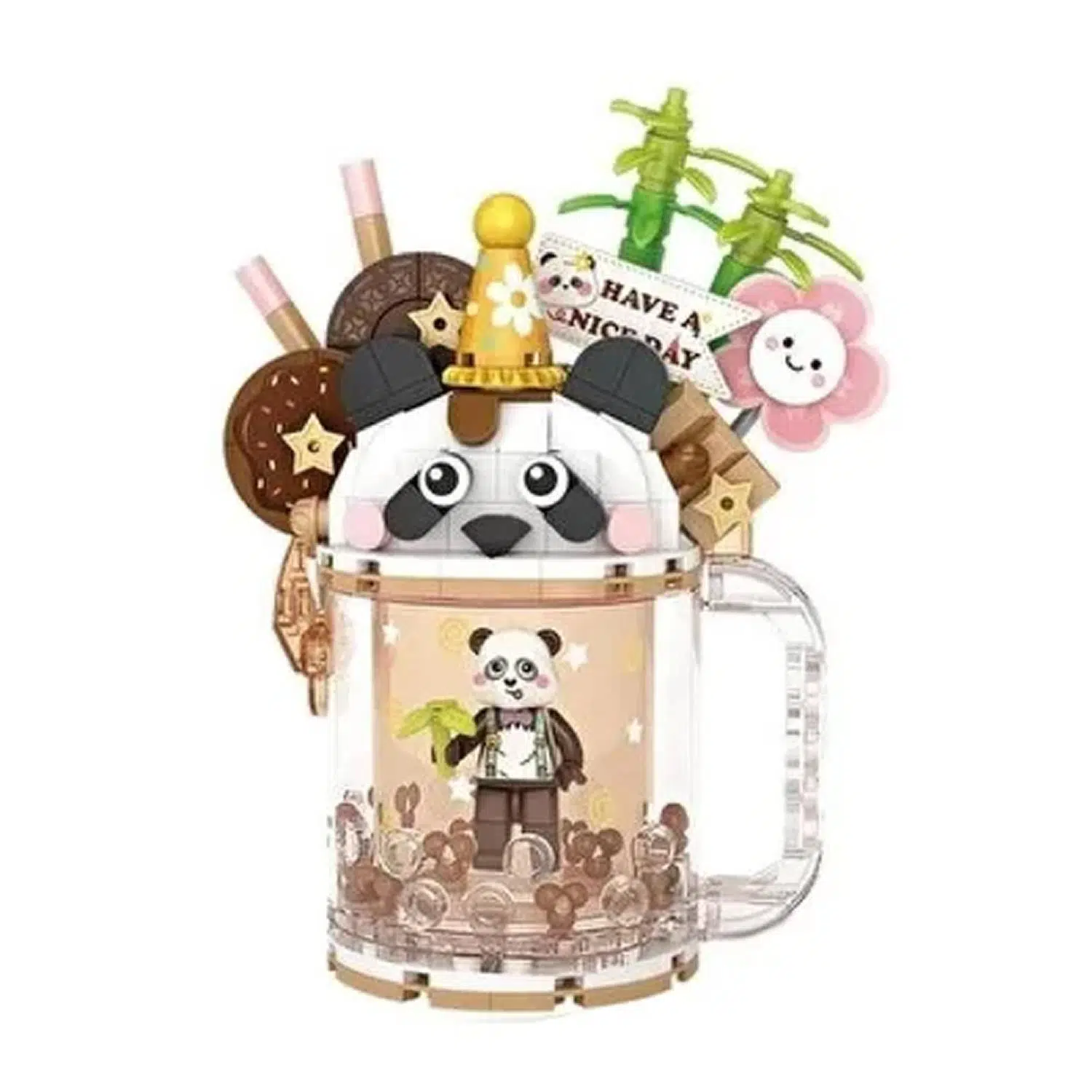 Panda Ayı Dondurma Kupası 297 Parça Block Oyuncak, sevimli panda figürü ve dondurma kupası formundaki özgün tasarımıyla hem eğlenceli bir montaj süreci hem de dekoratif bir sergileme imkânı sunar.
