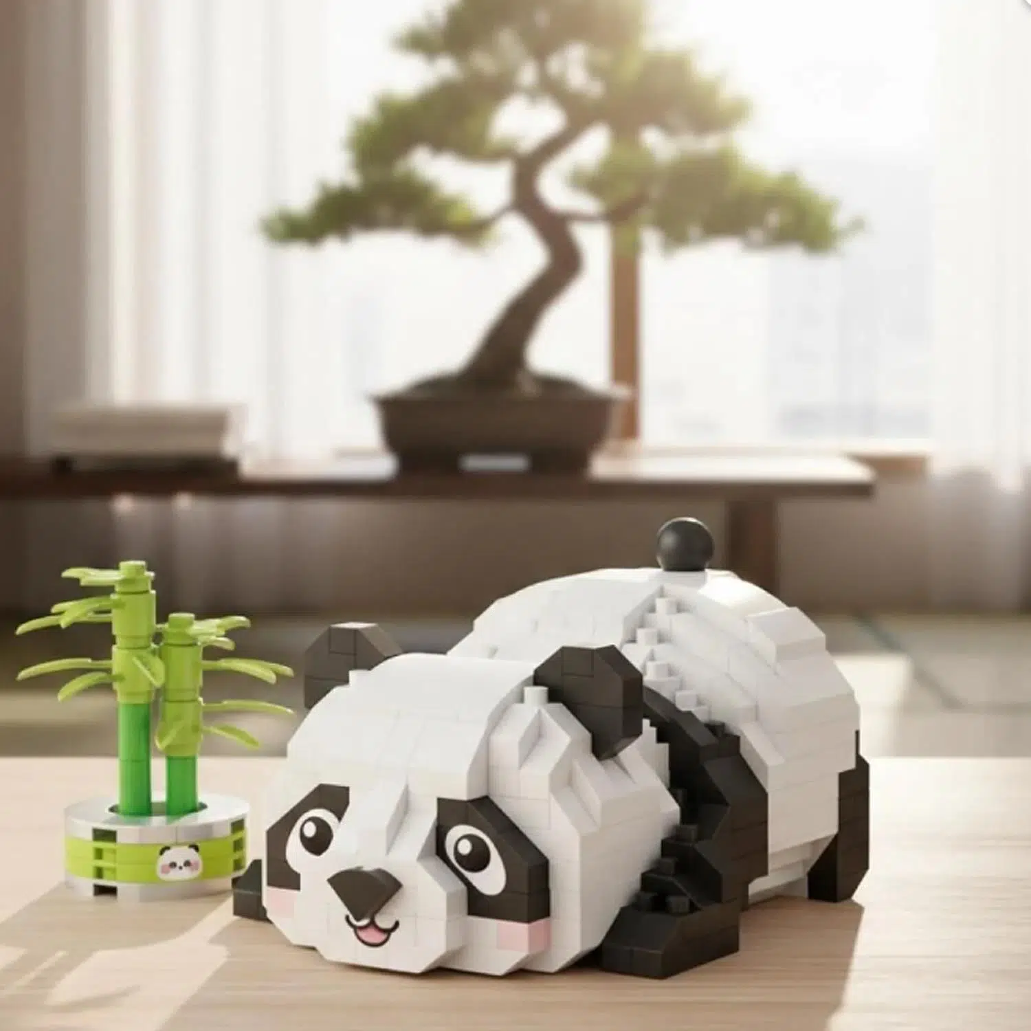 Dinlenen Panda 340 Parça Block Oyuncak, sevimli ve huzurlu panda figür tasarımıyla hem eğlenceli bir oyun hem de dekoratif koleksiyon ürünü olarak kullanılabilir.