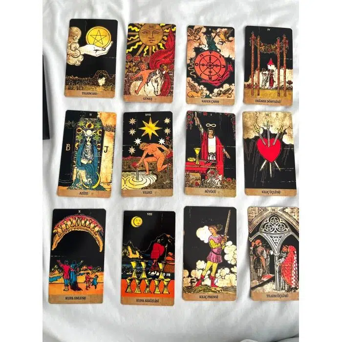Kutu içerisinde 78 adet Tarot Kartı ve 40 sayfalık kitapçık bulunmaktadır. Bu ürün kese İÇERMEZ. Sadece 78 Tarot kartı , özel tasarım kutu ve kitapçık ile birlikte gönderilir.
