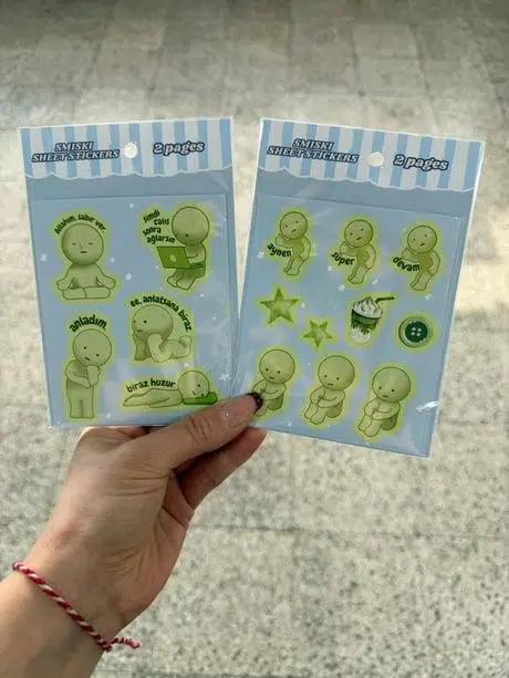 Paket içerisinde 2 kesimli sticker sayfası,1 ürün kartı bulunmaktadır. Her sayfada 5-6 sticker bulunmaktadır.